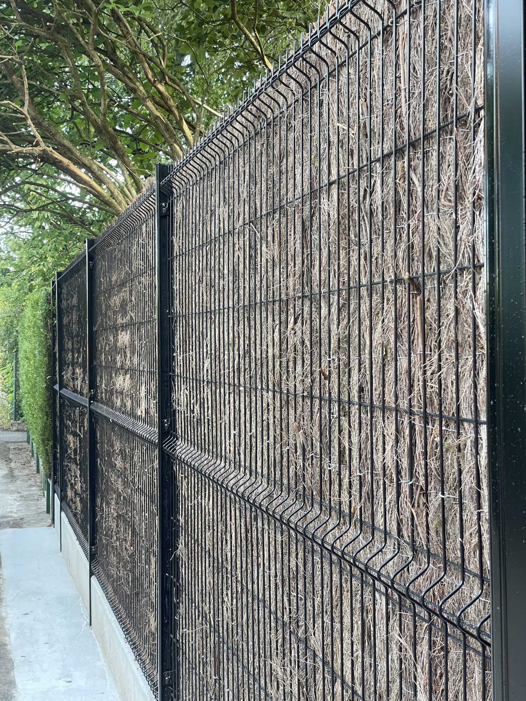 L’objectif était de sécuriser l’espace tout en préservant l’esthétique, grâce à une clôture discrète associée à une brande végétale pour plus d’intimité.