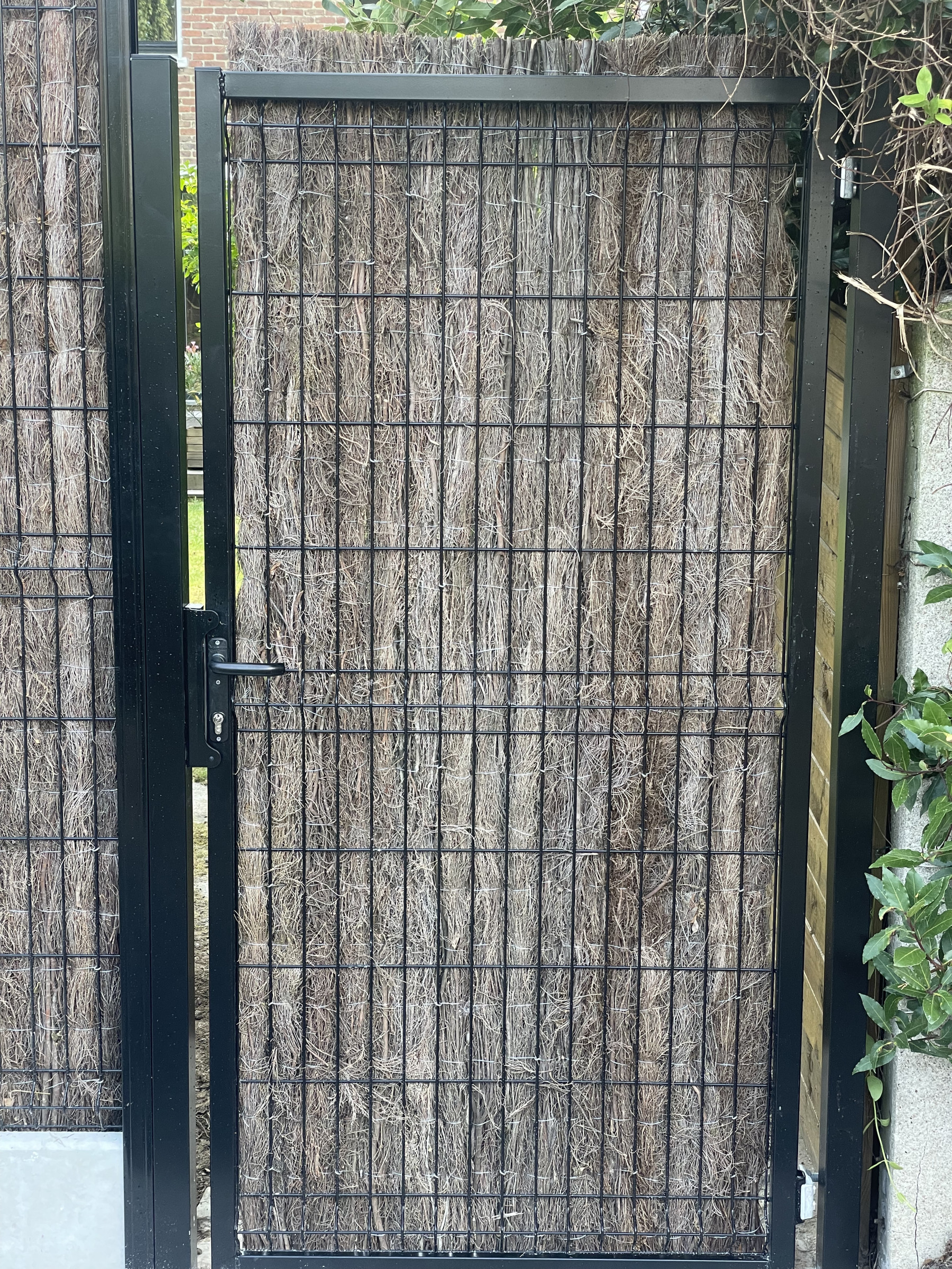Enfin, une clôture a été posée sur l’ensemble de la limite du jardin, avec un portillon d’accès.