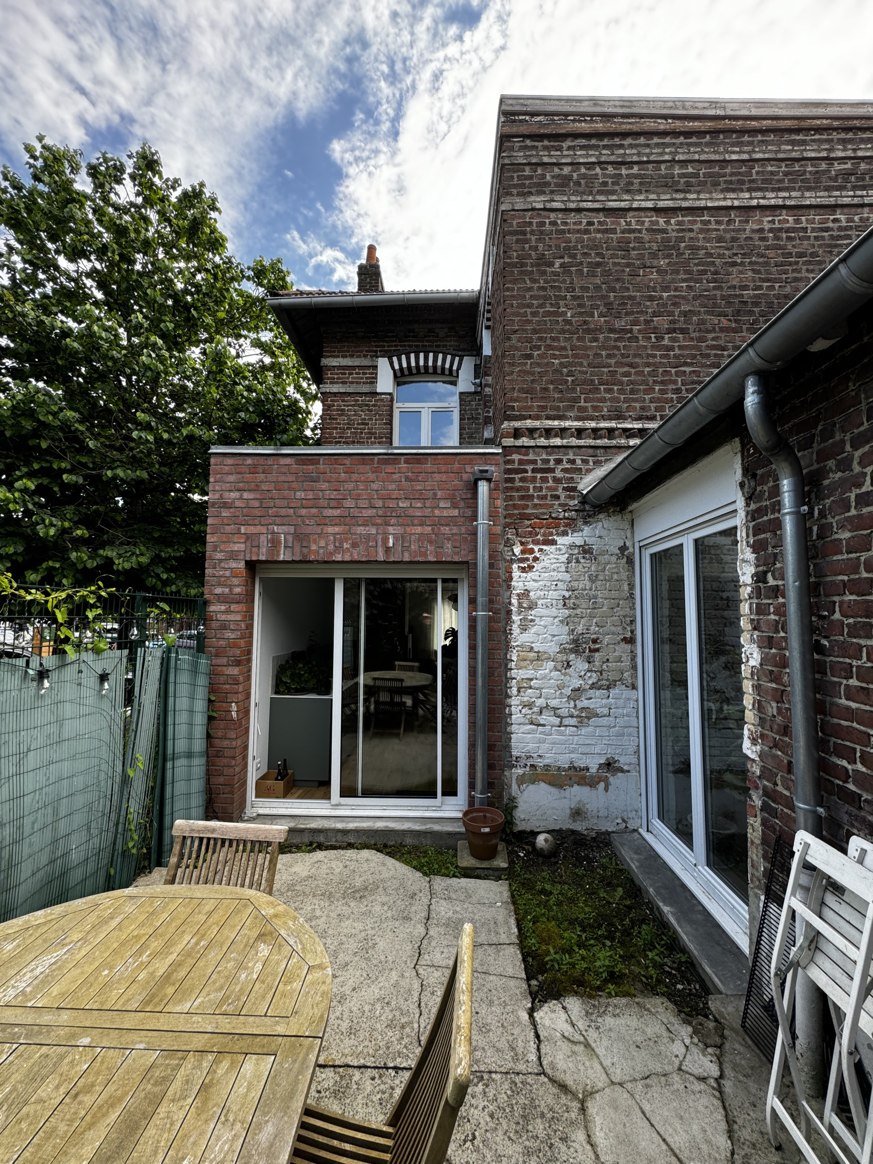 Une dalle béton a été créée pour des usages pratiques, et les joints de la façade côté jardin ont été repris afin d’unifier l’ensemble et soigner les finitions.