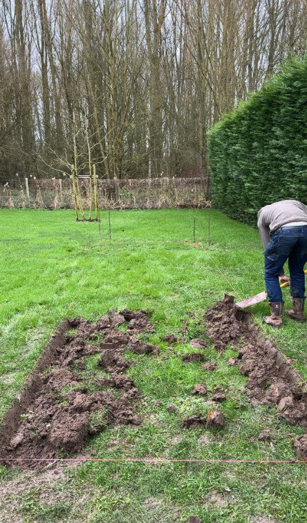 Les anciennes toiles ont été supprimées, puis le sol a été travaillé au motoculteur afin d’obtenir une terre propre et favorable aux nouvelles plantations.