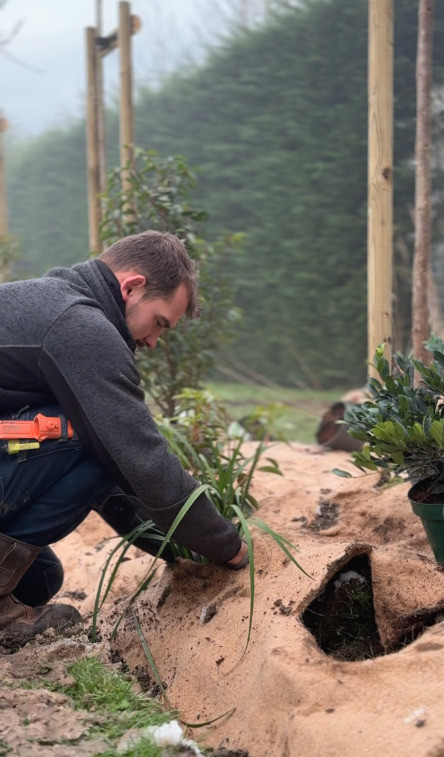 Une toile de paillage 100 % jute a ensuite été installée, suivie d’un apport d’engrais et d’un paillage en mulch bois.