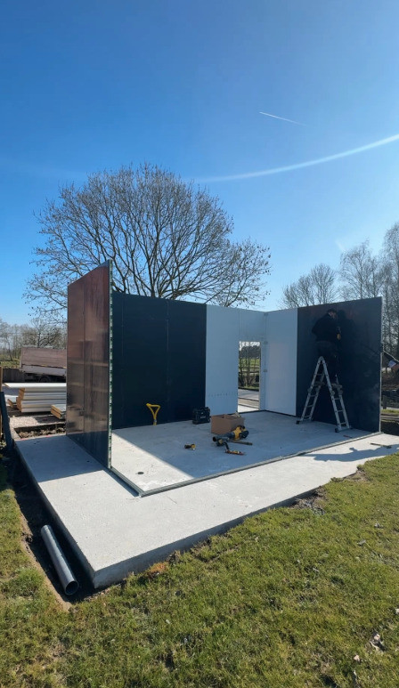 Le chalet a été réalisé avec une structure en panneaux sandwich isolés, garantissant un bon confort thermique toute l’année.