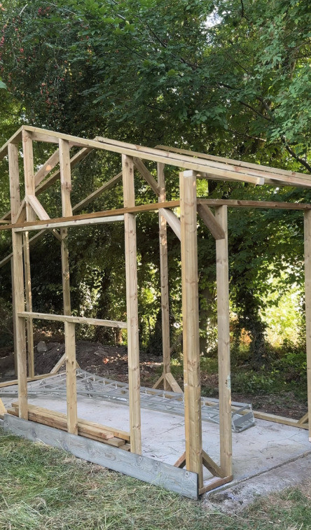 Le projet a débuté par le démontage de l’abri existant, avec conservation et stockage des éléments sur place, afin de repartir sur une base saine et adaptée aux nouveaux besoins.