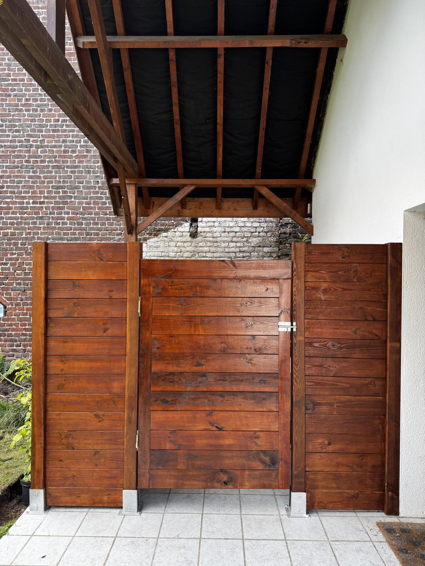 Le projet comprend plusieurs ouvertures vitrées ainsi que des portes, permettant de rendre l’abri lumineux, accessible et agréable à utiliser au quotidien. Ces éléments transforment le chalet en un véritable espace fonctionnel, et non un simple local de stockage.