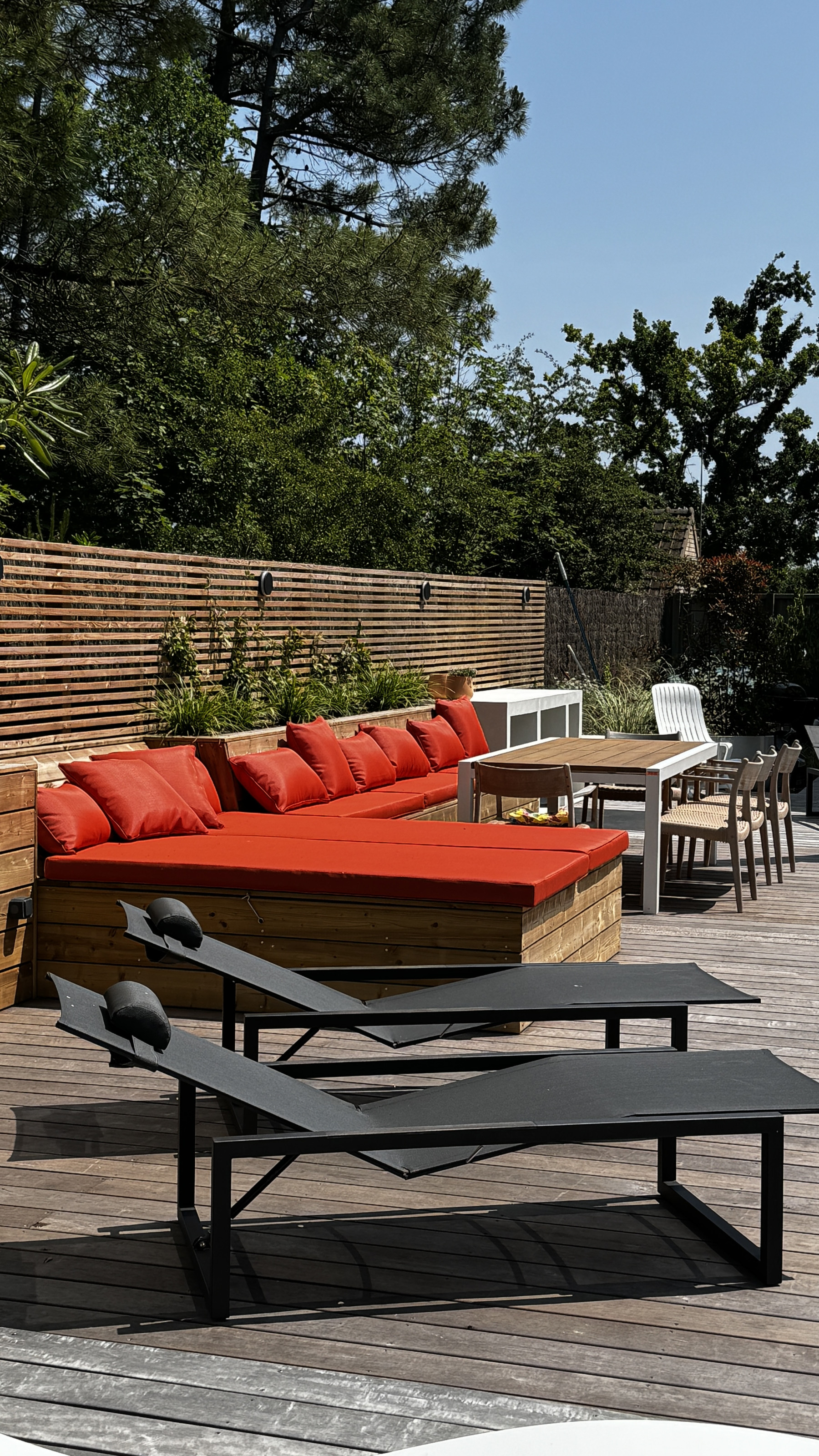 - Une terrasse suspendue, chevauchant la piscine existante, pour une ambiance unique et élégante